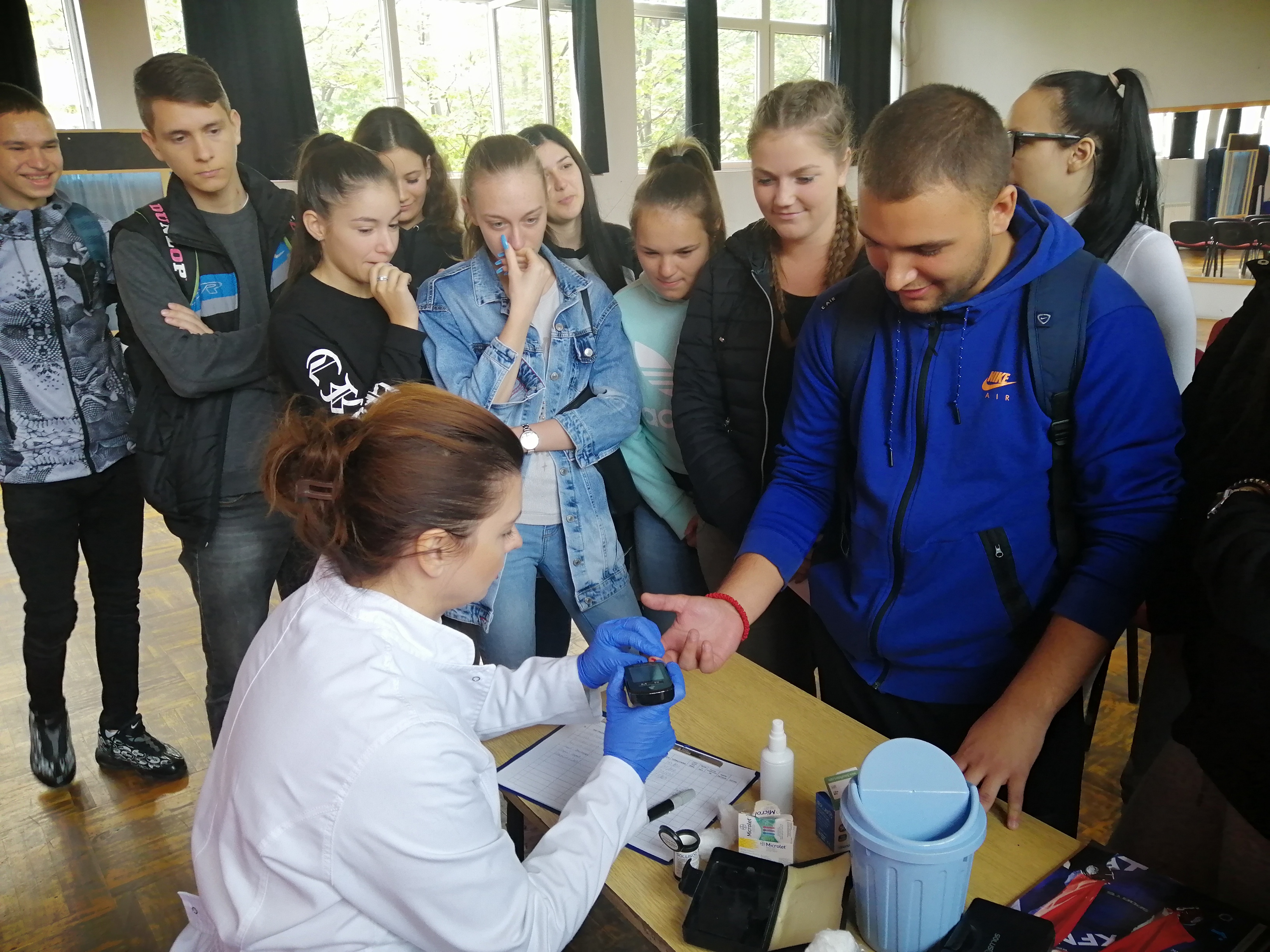 Стручни тим Друштва за борбу против дијабетеса града Новог Сада са лекаром дијабетологом, нутриционистом, професором физичког васпитања и едукаторима удружења упознао је ученике наше школе са симптомима и карактеристикама шећерне болест и истакао значај превенције и едукације младих када је у питању одговорност и брига о здрављу. Пунолетни ученици и запослени су имали прилику да на лицу места преконтролишу свој ниво шећера у крви и измере тежину и висину што је изазвало посебно интересовање. 14.новембар се иначе обележава као светски Дан борбе против дијабетеса као одговор на све већи број оболелих људи широм света.