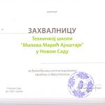 Наставница Техничке школе „Милева Марић Ајнштајн“ Мариа Малешевић Чучулис је, овом приликом, примила захвалницу за допринос популаризацији науке међу младима и успешну сарадњу са Факултетом. Директору школе Жељку Савићу, уручена је захвалница за дугогодишњу институционалну сарадњу са Технолошким факултетом Нови Сад. Захвалнице је уручила декан Факултета, проф. др Биљана Пајин.