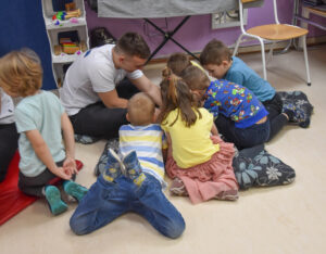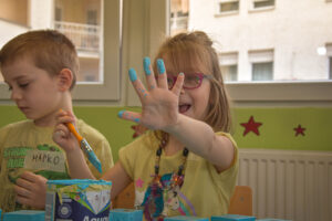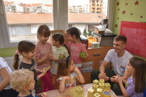 Наши ученици су посетили новосадске вртиће и заједно са малишанима су бојили перле које ће се даље користити за састављење абакус-рачунаљке. Поред тога што су им малишани помагали, радили су заједно и на упознавању првих основних математичких операција.