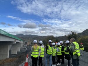 мостова и прилазних путева на изградњи аутопута Е-763, Прељина – Пожега. Ово је била јединствена прилика да се ученици грађевинске струке на лицу места упознају са врсним инжењерима и од њих чују све о радовима, текућим поблемима и начинима њиховог превазилажења у градњи овако значајне деонице пута Коридор 11, Београд – Јужни Јадран.