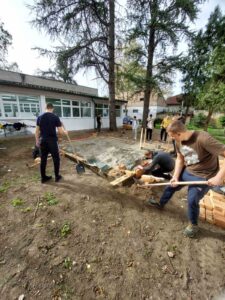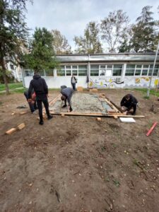 Ученици трогодишњих образовних профила – руковаоци грађевинском механизацијом и декоратери зидних површина били су веома вредни ове јесени. Радили су на чишћењу и припремању терена за изградњу учионице на отвореном. Изливали су стопе за летњиковац и постављали цигле као природни материјал за под. Наравно, треба истаћи да су сви радови ишли брже и лакше јер су несебично помогли и мајстори који раде на одржавању школе, као и неколико ученика геодетске и архитектонске струке.