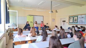 Докторка Мирослава Вуковић психолог и др Марија Обрадовић, гинеколог-акушер одржале су информативно предавање о женском репродуктивном здрављу, превенцији и важности редовних гинеколошких прегледа. Ученице су имале прилику да постављају питања и разговарају о специфичним темама које их интересују. Психолог је пружио саветовање и информације о менталном здрављу, наглашавајући важност разумевања и бриге о сопственом емоционалном стању. Посета гинеколога и психолога организована уз подршку „ДМ компаније“ била је изузетно корисна и