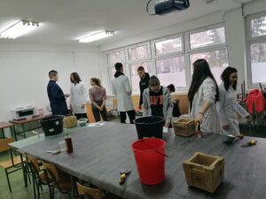 У оквиру предмета Испитивање материјала и конструкција ученици Гт21 су извели вежву испитивање чврстоће бетона на притисак. Ово испитивање има највећу примену у грађевинској пракси,па је јако значајно што су је ученици самостално извели од почетка до краја. Прво су припремили узорке бетона,коцке странице 15 см , у школској лабораторији. Неговали су узорке у води температуре 20° Ц , обележили и понели на Департман за грађевинарство и геодезију да у њиховој преси измеримо силе лома на притисак. Овим радом заокружен је читав процес одређивања марке бетона. Поред рада у лабораторијама, ученици су имали стручно предавање од стране професора департмана др Слободана Шупића,др Весна Булатовић и др Ивана Лукића о начину стварања нових материјала, као што су еколошки цементи попут биопепела и лаких бетона.