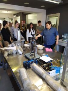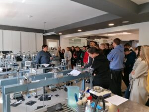 Посетили су и Грађевински институт ЦПЛ у Ветернику где су у грађевинским лабораторијама видели поступак, прибор и начин испитивања камена, бетона, битумена… Прикупљене слике и материјал ученици ће користити за израду елабората.